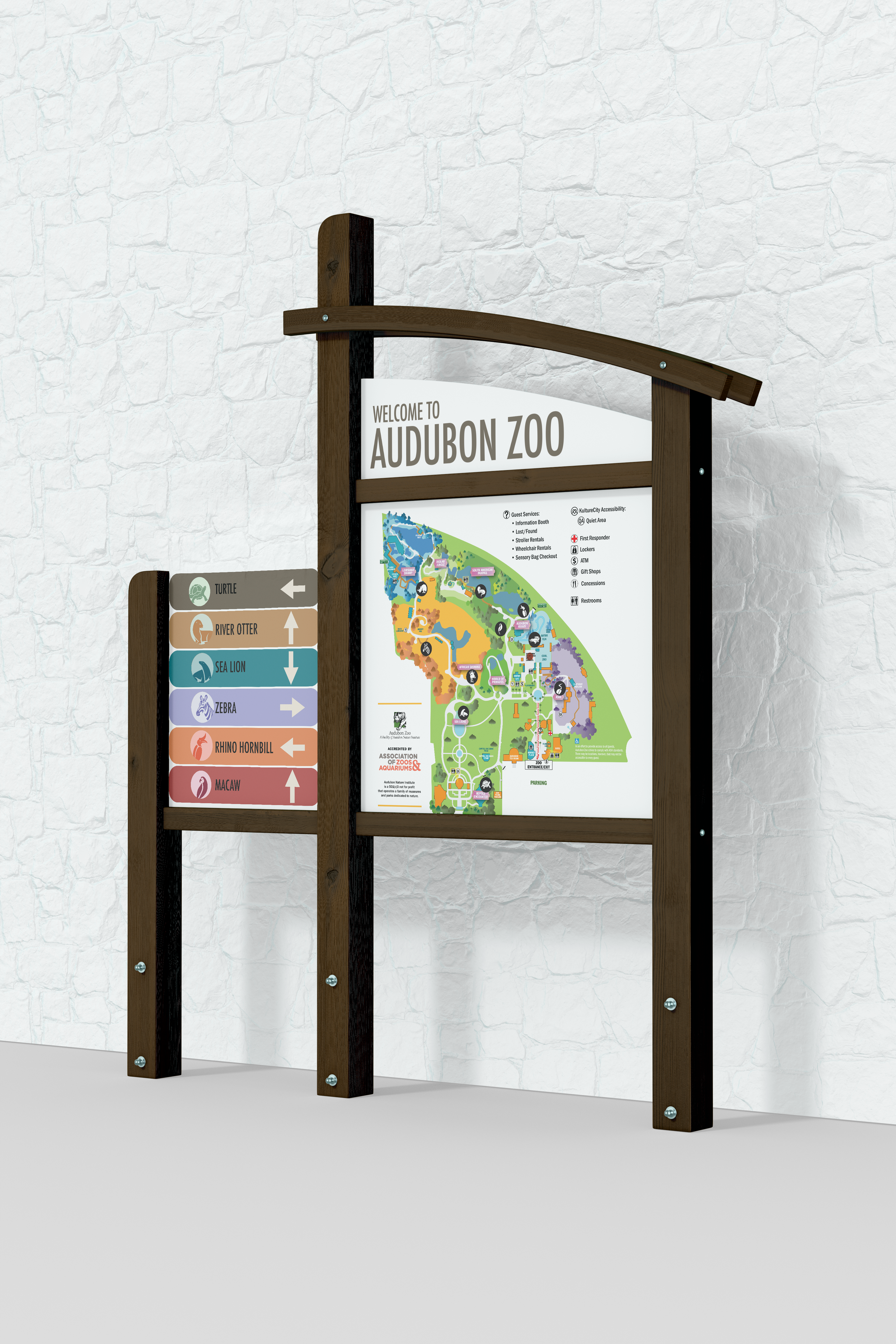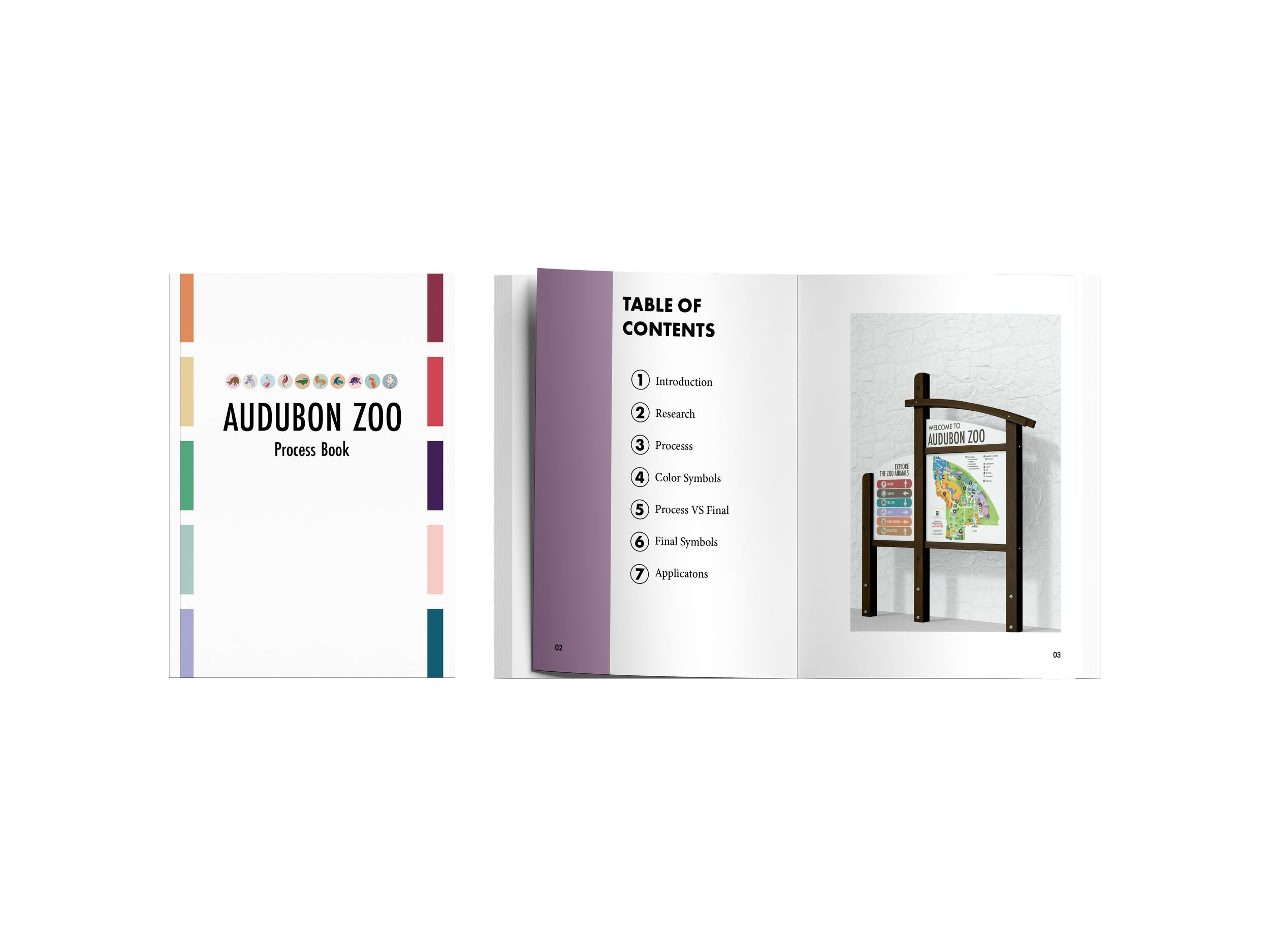 We were challenged to establish new symbols and signage for the Audubon Zoo. The current iconography for the zoo uses outdated statues and lacks a variety of animal icons. The zoo dates back to the early 1900's, and some of the visual concepts in use have not evolved with the times. The symbols are clearly outdated, therefore our goal is to create some new and innovative designs that please the modern day's eye. Our plan consisted of creating a set of ten distinct symbols that are easily legible in order to help visitors effortlessly navigate though the zoo. Our solution to these symbols were to incorporate both black and white as well as color, and are presented in both a distinguishable and representable way that allows them to converge together as a complete symbol set.